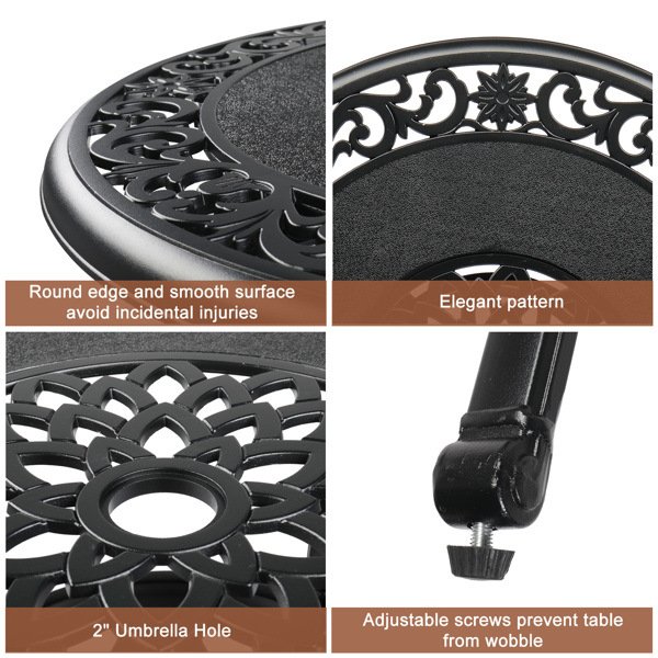 How about spending a relaxing afternoon with your friend in your garden? All you need is a nice cup of coffee and a dining table. We recommend this 32*32*41" Outdoor Patio Cast Aluminum Round Bar Table for you. This iron table is more durable than regular table. That makes our tables against severe weather and ensure longer service life. The powder coated steel iron smooth, which can be quickly wiped. Useful and good looking, this table will not disappoint you.