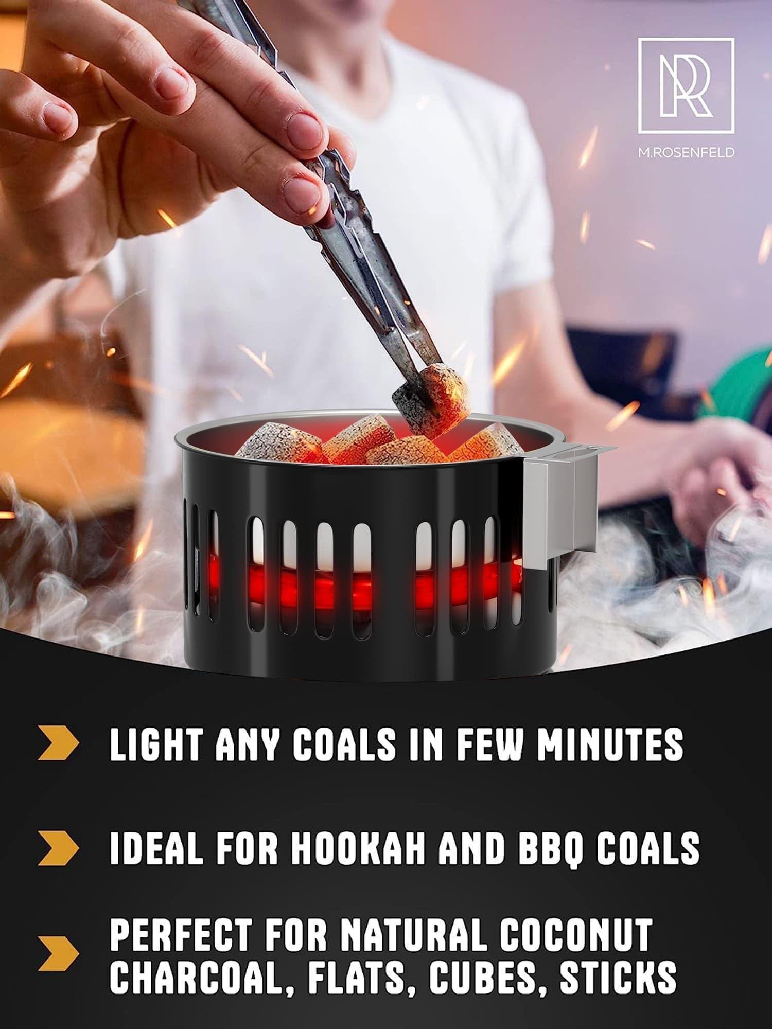 1.very fast & universal - with 800-watt this charcoal briquettes electric grill burner makes coals for anything (coconut charcoal, bamboo, wood) to burn red after 6 min & ready to use. for any kind of coals: cubes, flats etc).