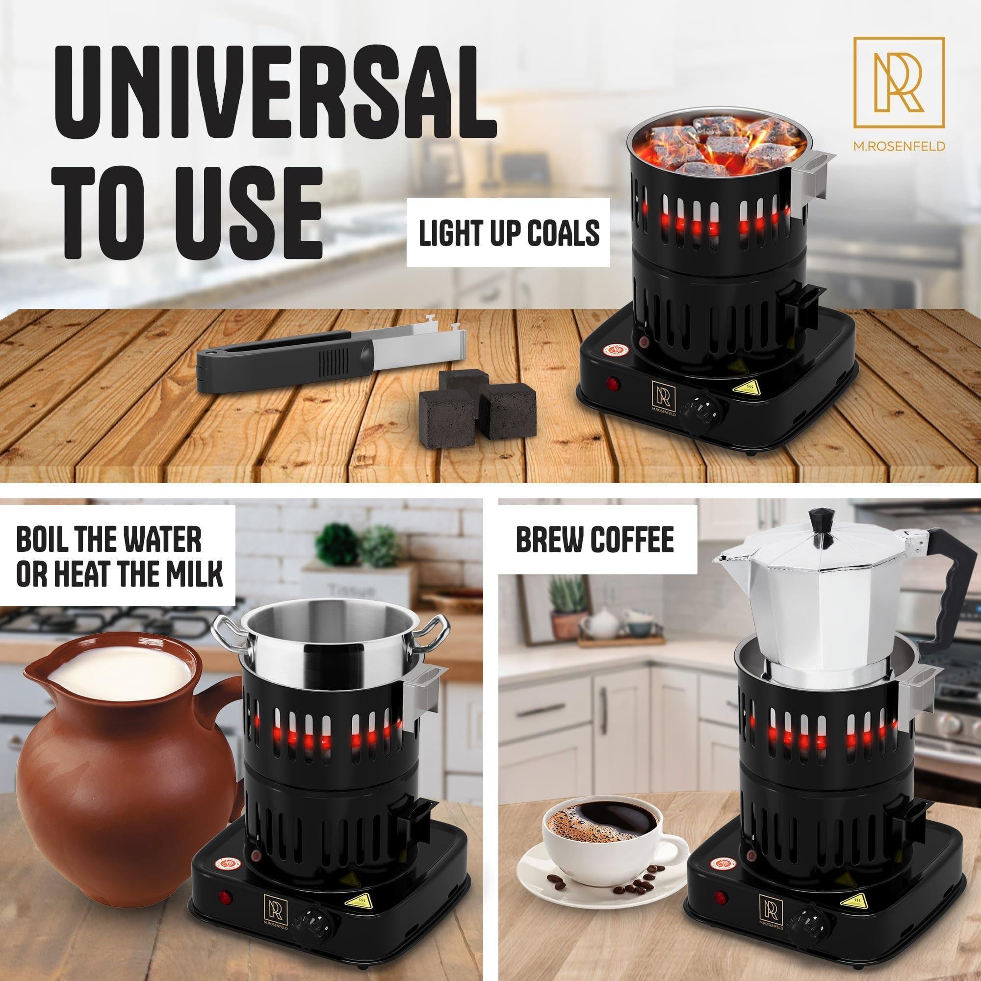 3.easy to use & safe - plug in & turn on the heat switch to 5. after 6 min the coals are ready, turn the switch off and remove the coals. safe for indoor or outdoor coal burner stove electric burner.