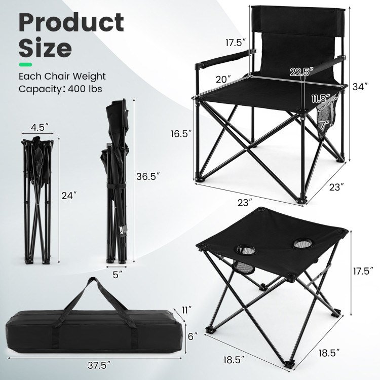 Outdoor Folding Camping Chairs and Table Set with Carrying Bag