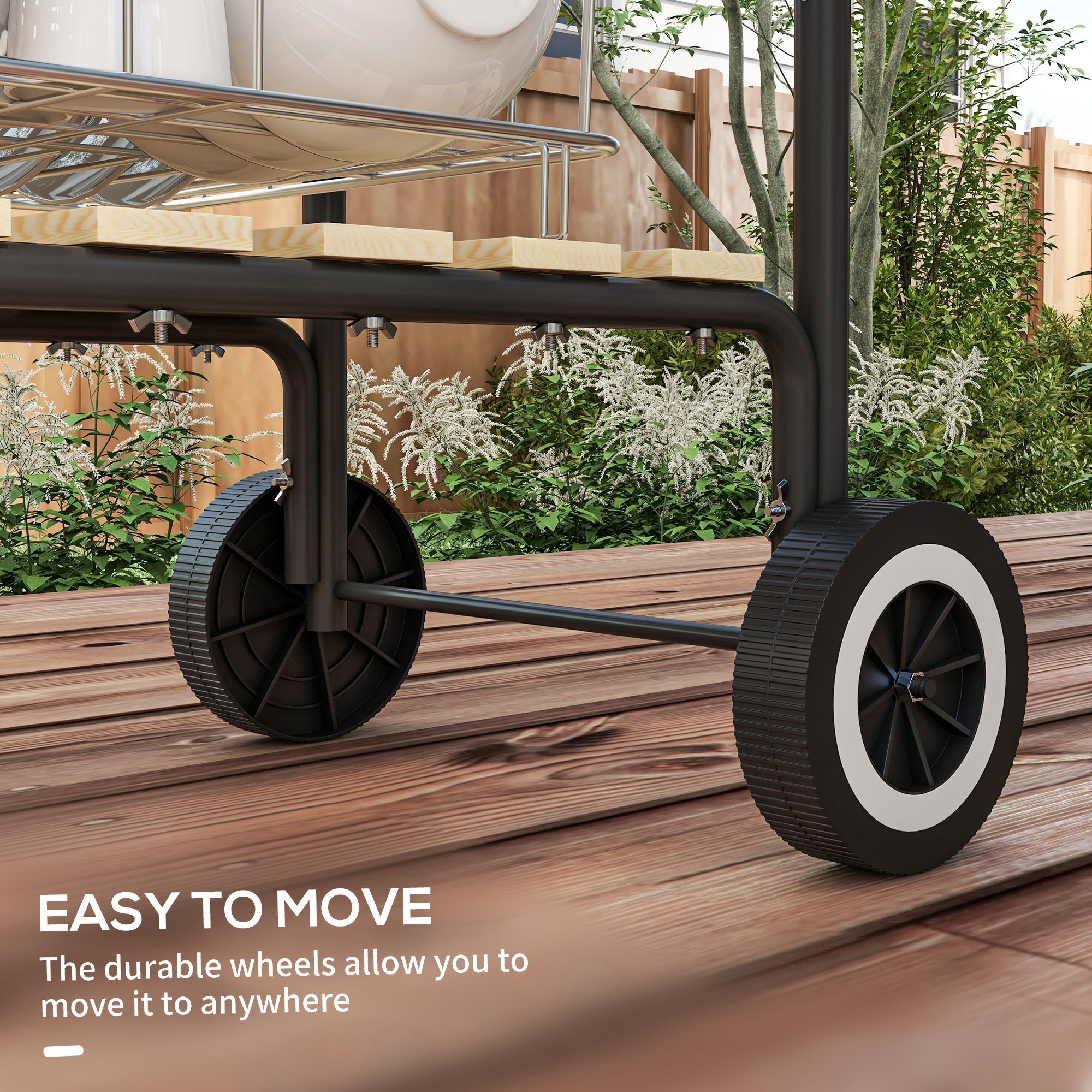 Outsunny 17" Portable Charcoal Grill with Wheels, 2 Side Tables and Bottom Shelf, BBQ with Adjustable Vents on Lid for Picnic, Camping, Backyard