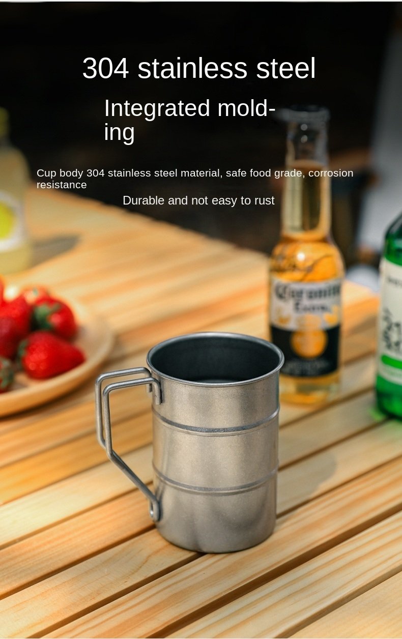 Outdoor stainless steel mug large capacity beer mug retro tea cup old wide mouth mug camping mug self-drive