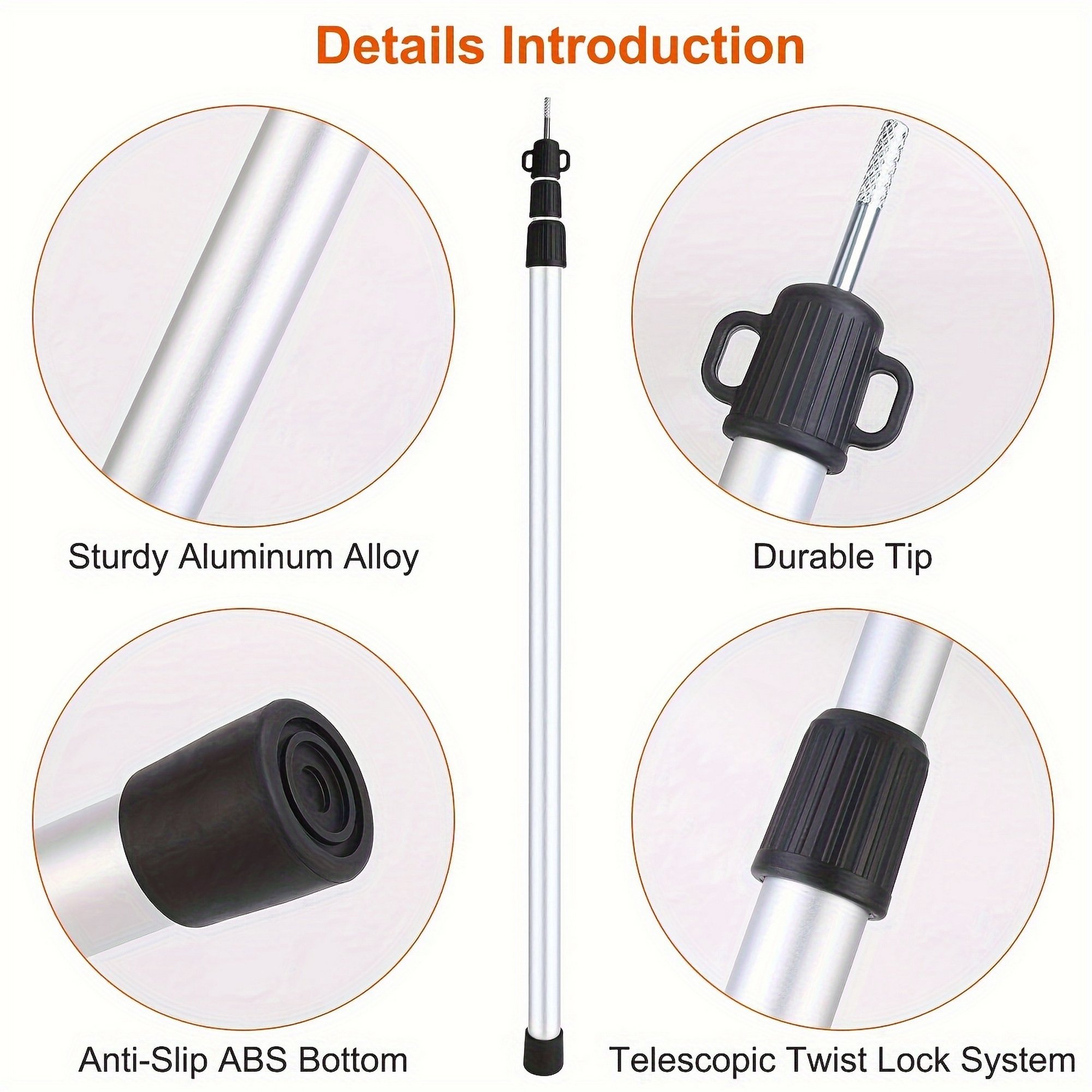 *Easy To Use*:Clear marks are labeled on the poles to release or lock. Just rotate the upper pole anticlockwise(right) and pull it the extend the length; then rotate the upper pole clockwise(left) to lock.