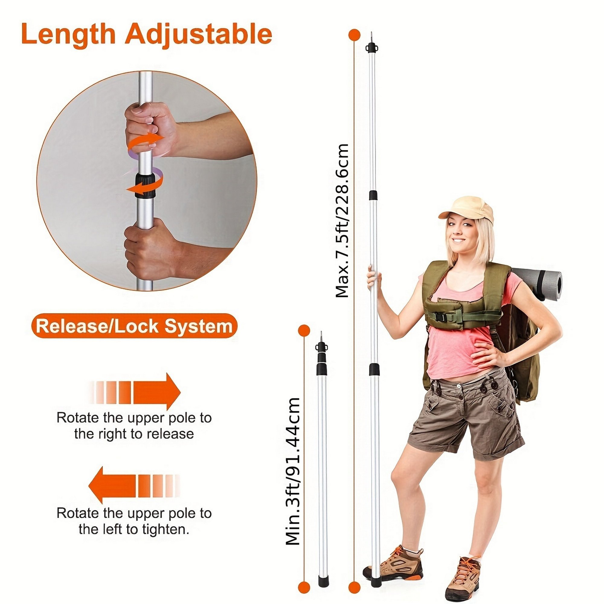 *3FT-7.5FT Length Adjustable*:The telescopic tarp pole can be adjusted from 3ft to 7.5ft. Easily adjust the length to fit all your tarp needs.