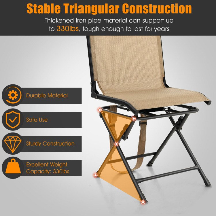 2.360 Degree Free Rotation: Thanks to its rotation function, you can sit on the chair and rotate freely according to your needs. 360-degree rotation allows you to easily focus on and keep track of your target, which is convenient for hunting. Besides, the metal connector helps you effortlessly turn to different positions.