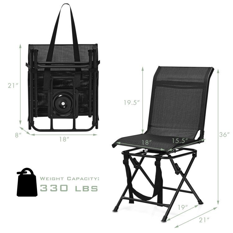 5.Foldable and Lightweight Structure: Featuring the foldable structure, the swivel hunting chair can be easily folded in a compact size for convenient storage and transport. Meanwhile, the hunting chair only weighs 13lbs, lightweight and handy for outdoor hunting.