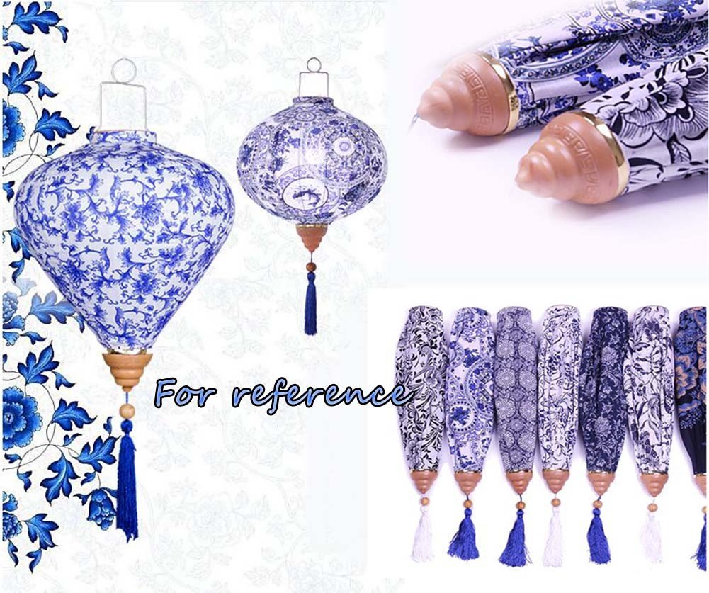 Traditional Cloth Lantern Chinese Style blue-and-white Porcelain Pattern Home Garden Hanging Decorative Lampshade 14" Traditional Cloth Lantern Chinese Style blue-and-white Porcelain Pattern Home Garden Hanging Decorative Lampshade 14"