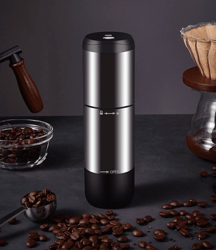 Portable design (car, office, home life, travel, outdoor camping) for freshly ground coffee